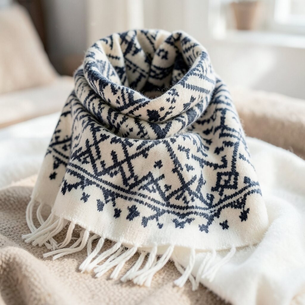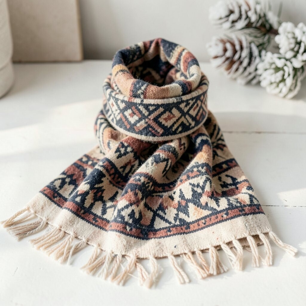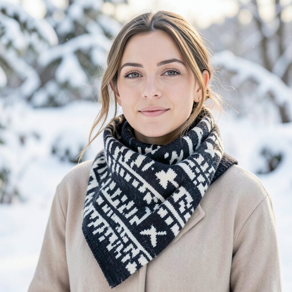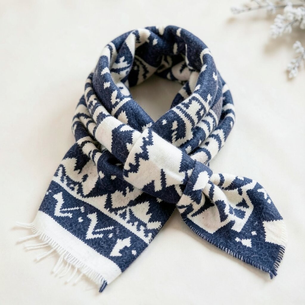 The geometric patterns add a touch of sophistication. It’s great for both casual and formal winter outfits. Pair it with a nice coat, and you’re good to go!