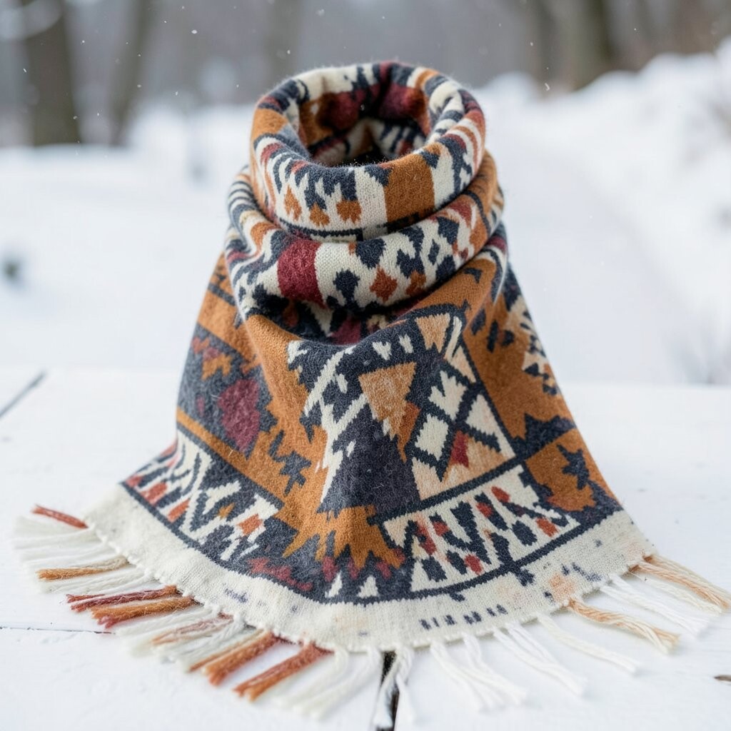 The geometric pattern adds depth to the ensemble. It’s perfect for those who love experimenting with layers. Plus, it’s super warm!