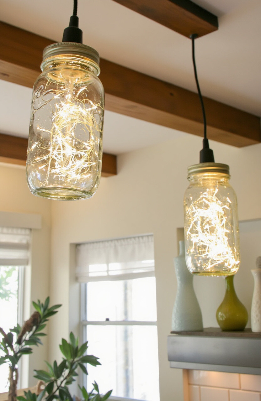 Mason jars are versatile and can be transformed into charming light fixtures. Hang them as pendant lights over the kitchen island or dining table for a rustic touch. They create a warm ambiance and are a conversation starter.