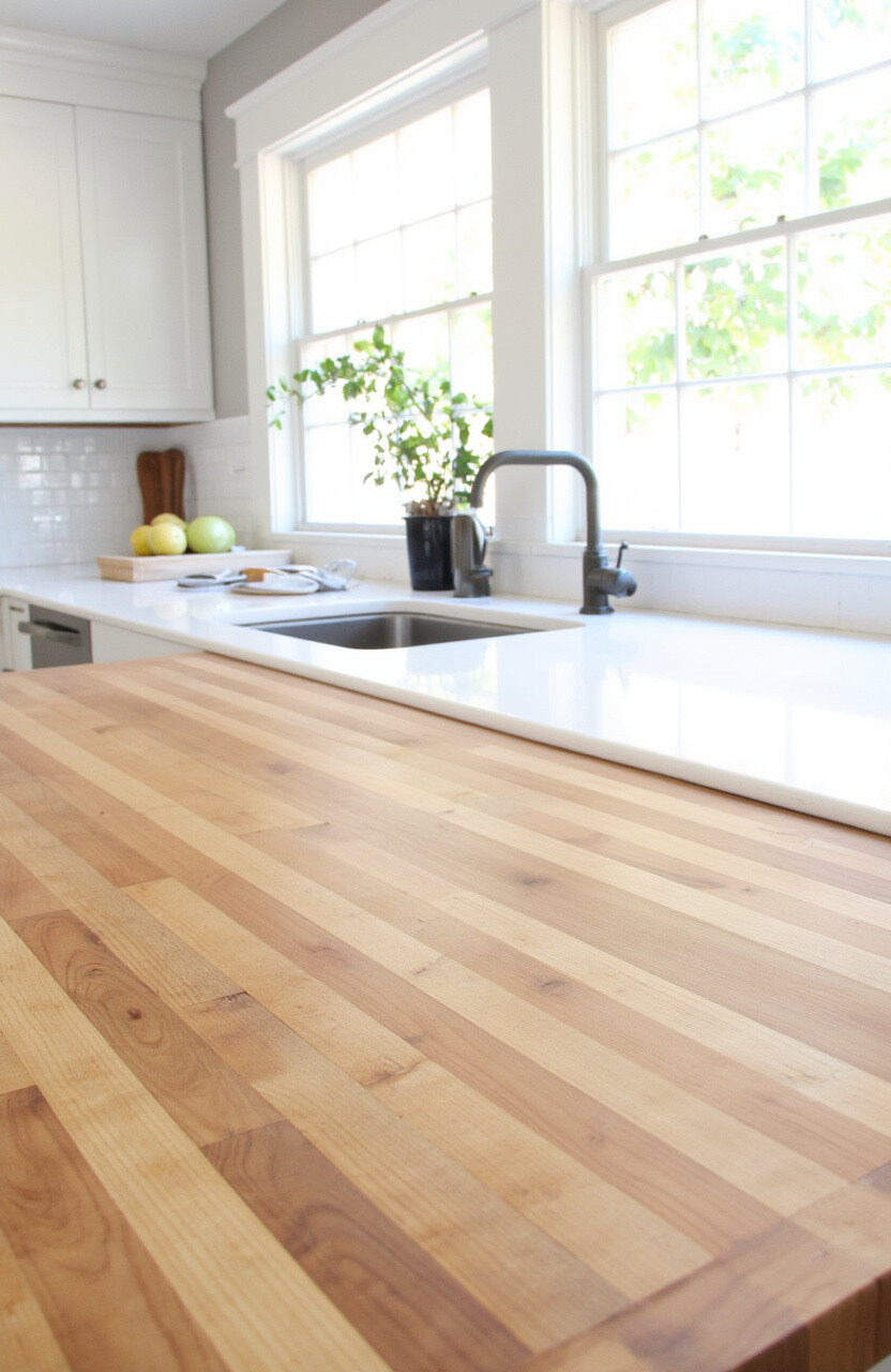 These countertops require regular maintenance but are worth the effort for their beauty and functionality. They’re relatively affordable compared to other materials. The natural grain patterns make each piece unique and timeless.