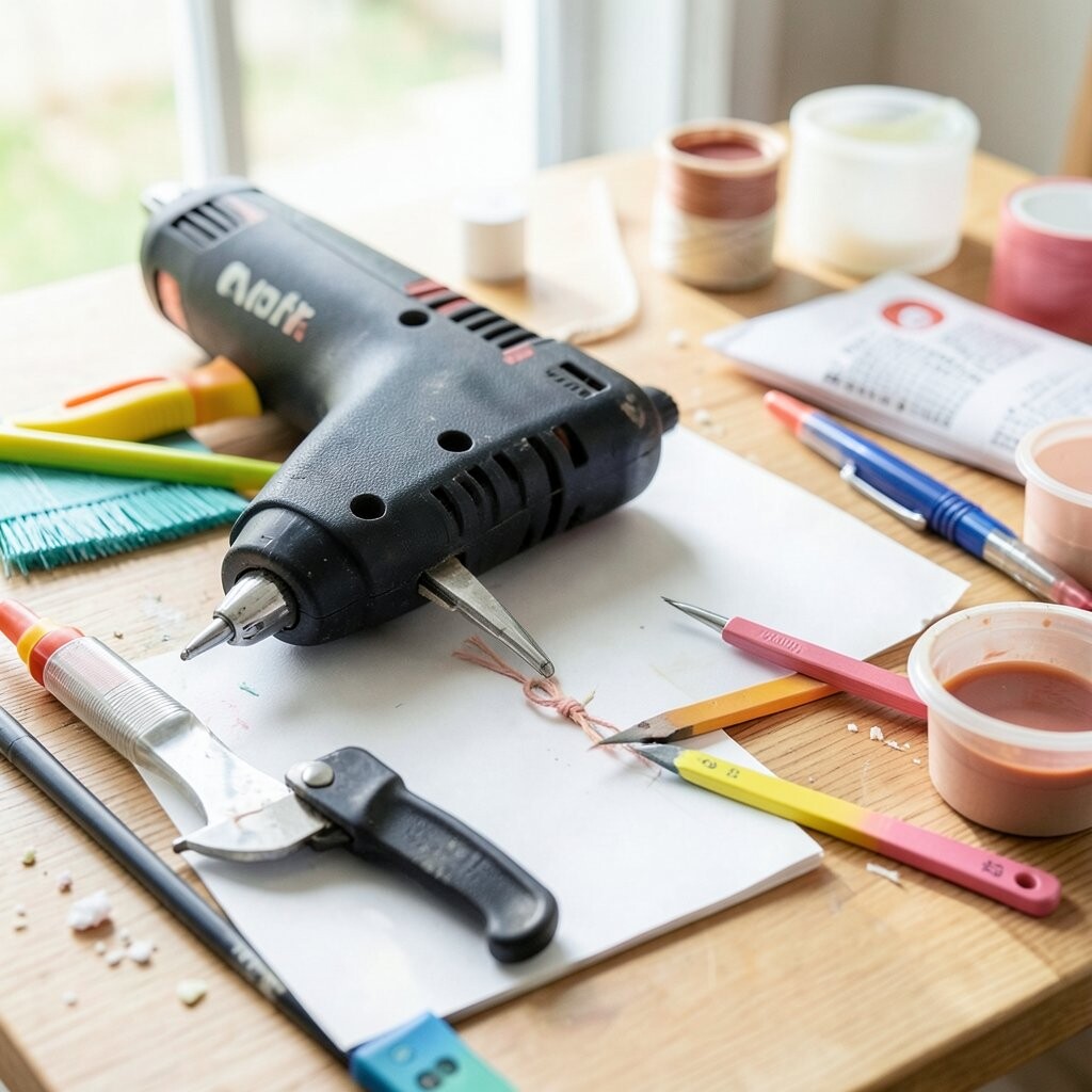 The hot glue gun is a crafter’s best friend. It’s perfect for quick fixes and creative projects, binding materials like fabric, wood, and plastic. The glue sets fast, making it ideal for those who can’t wait to see their ideas come to life.