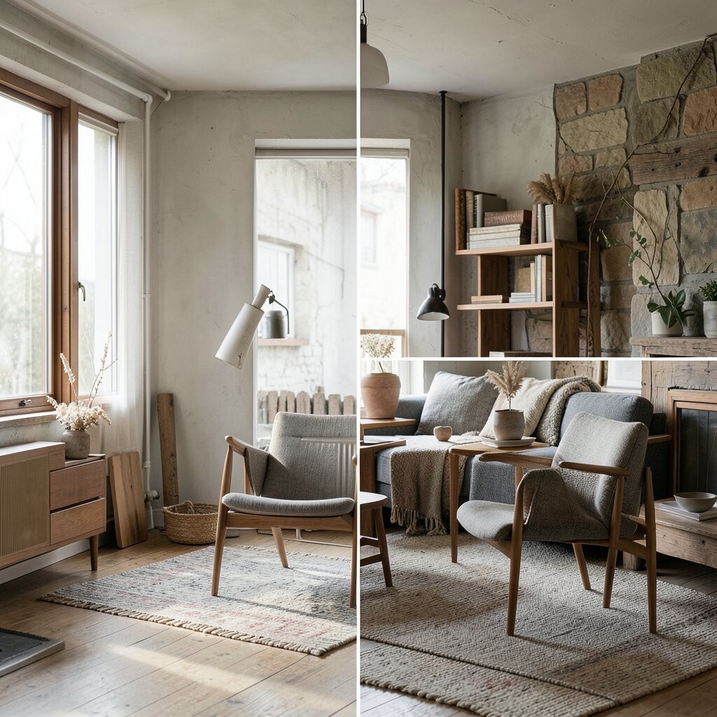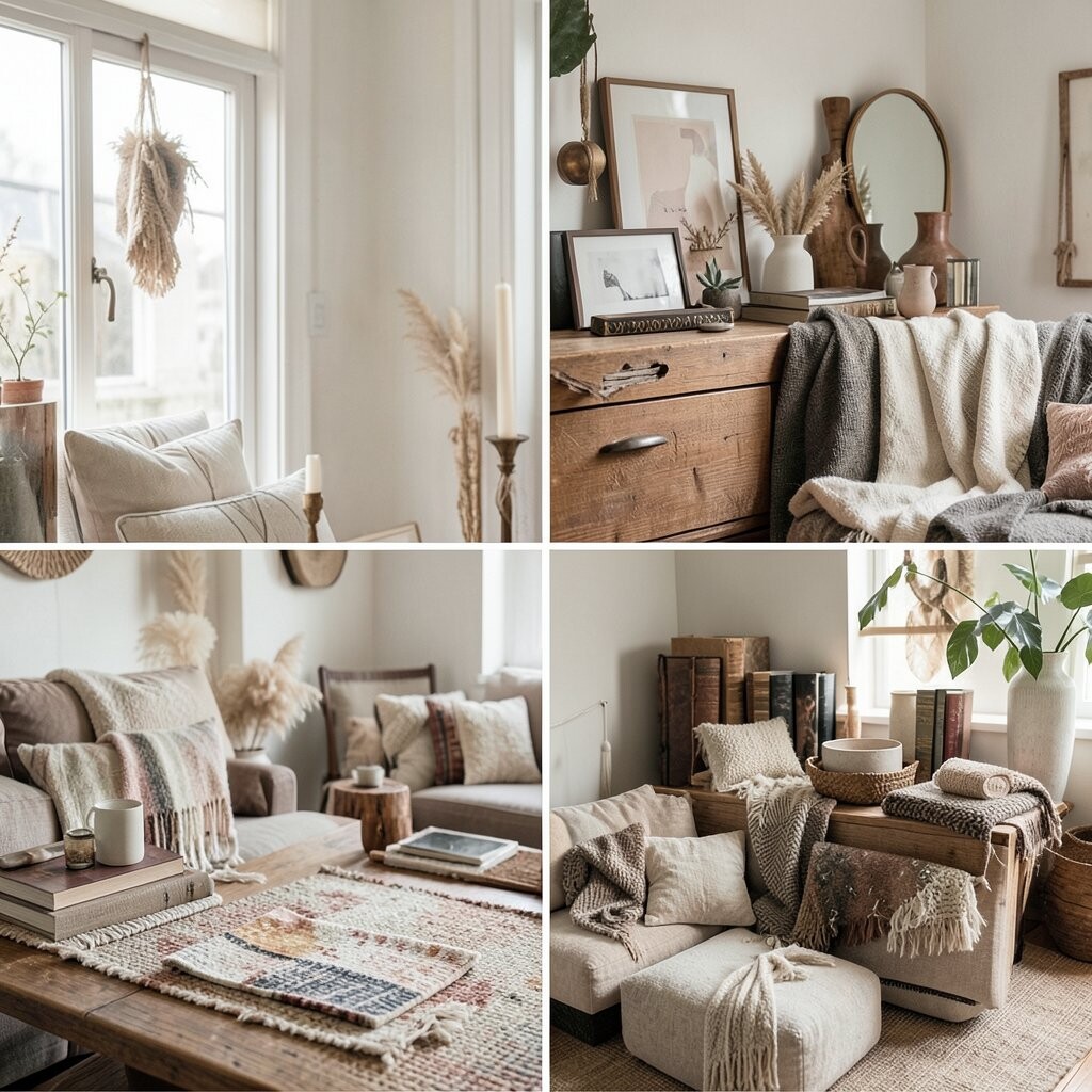 Mix contemporary furniture with vintage textiles for a cozy, layered look. It’s like a patchwork of styles.