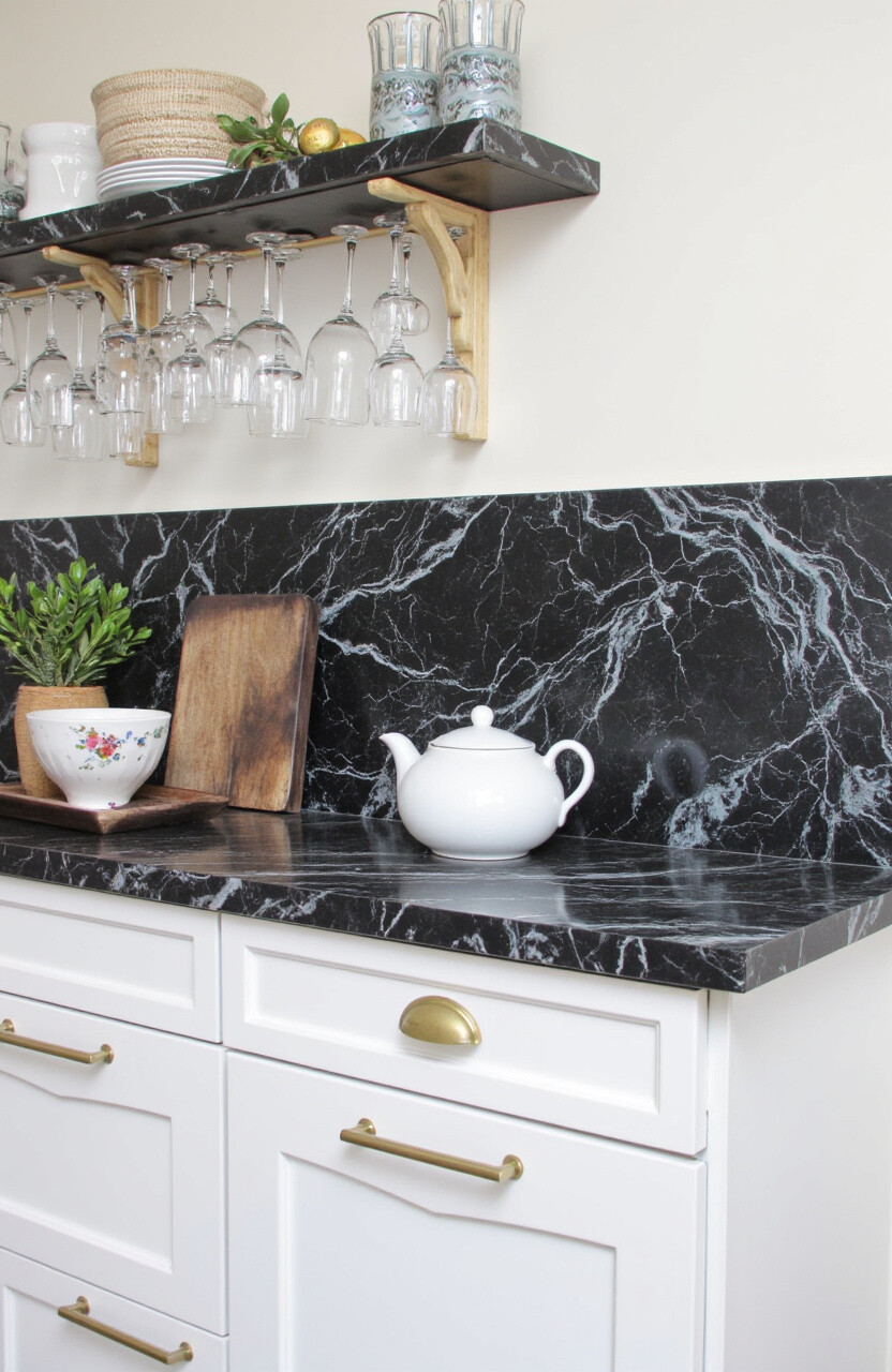 Consider this option if you’re on a budget but want to include marble in your design. Mix with glassware for a stylish display.