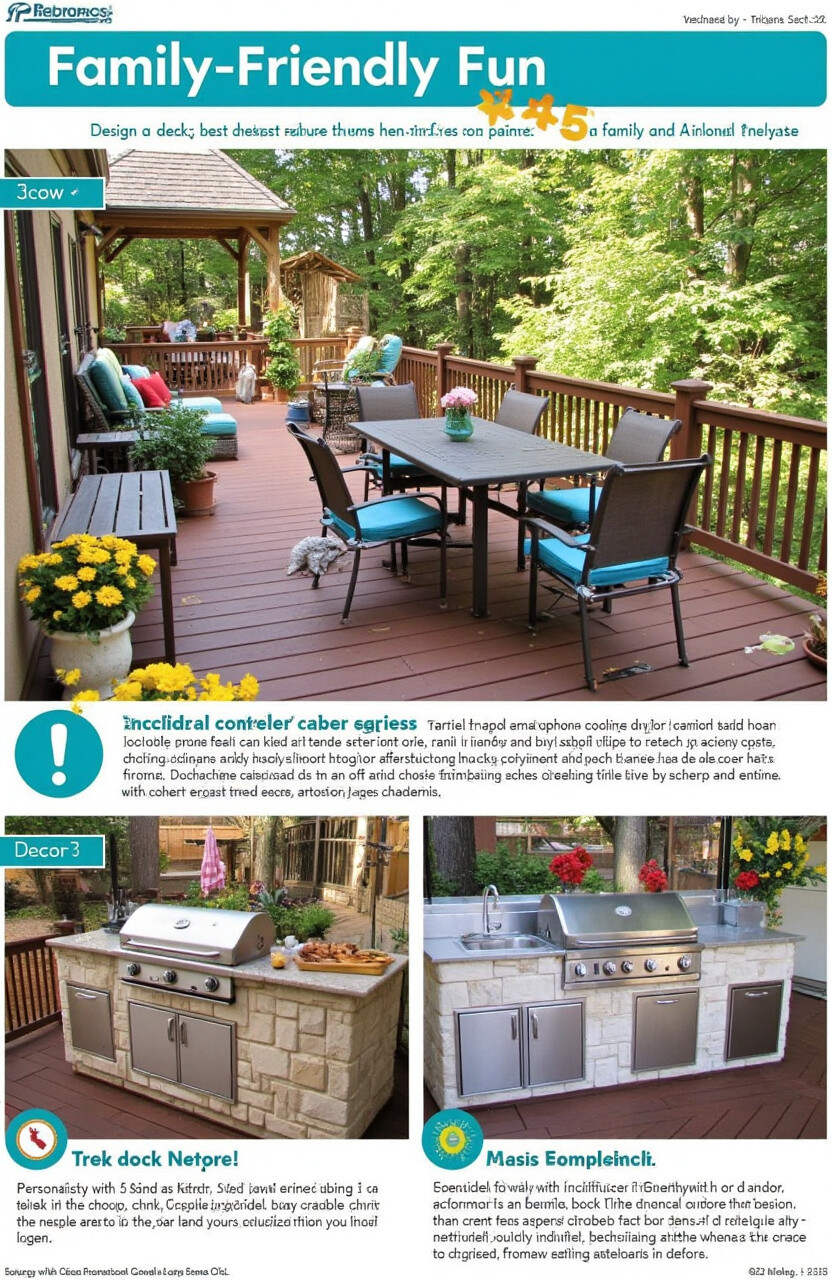 Design a deck that’s perfect for family gatherings and fun. Include a spacious cooking area and plenty of seating for everyone.