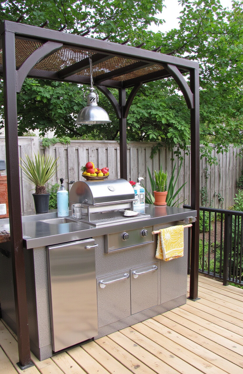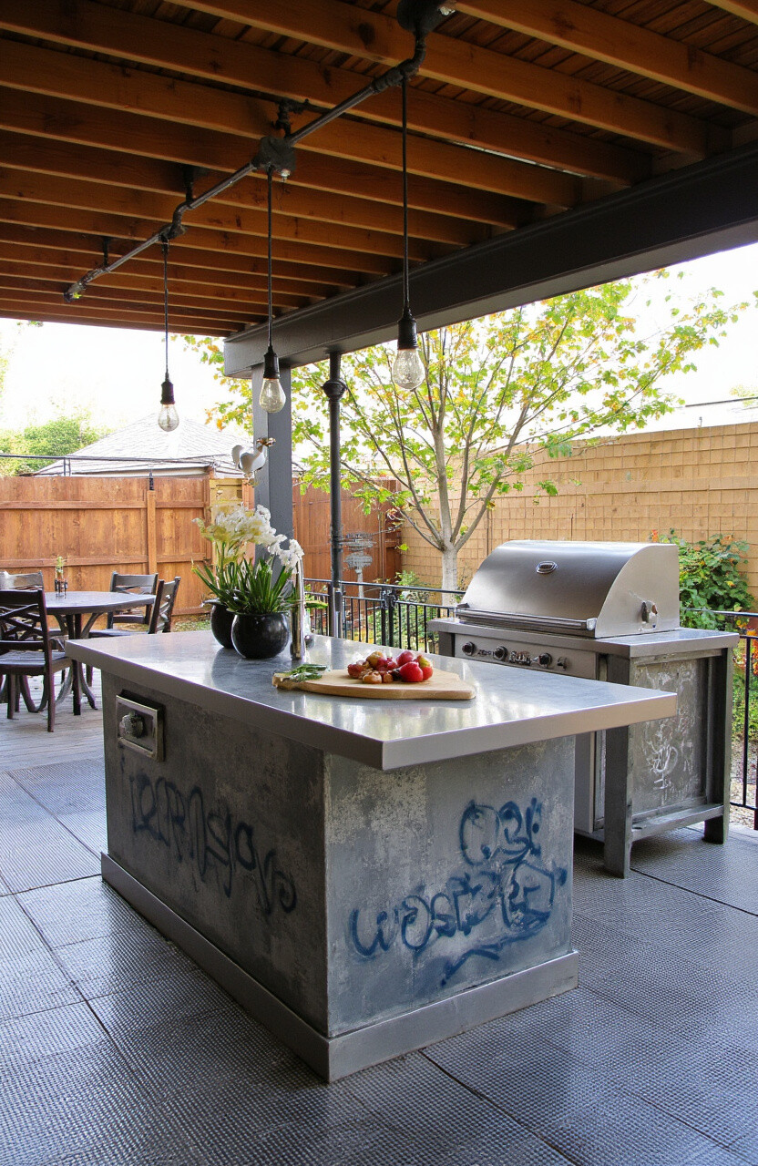 Exposed pipes and metal surfaces define this style. An industrial kitchen brings the trendy loft apartment vibe outdoors.