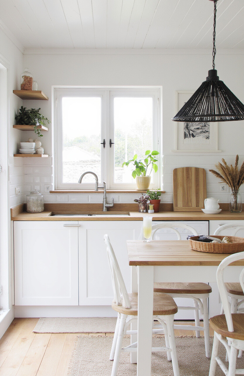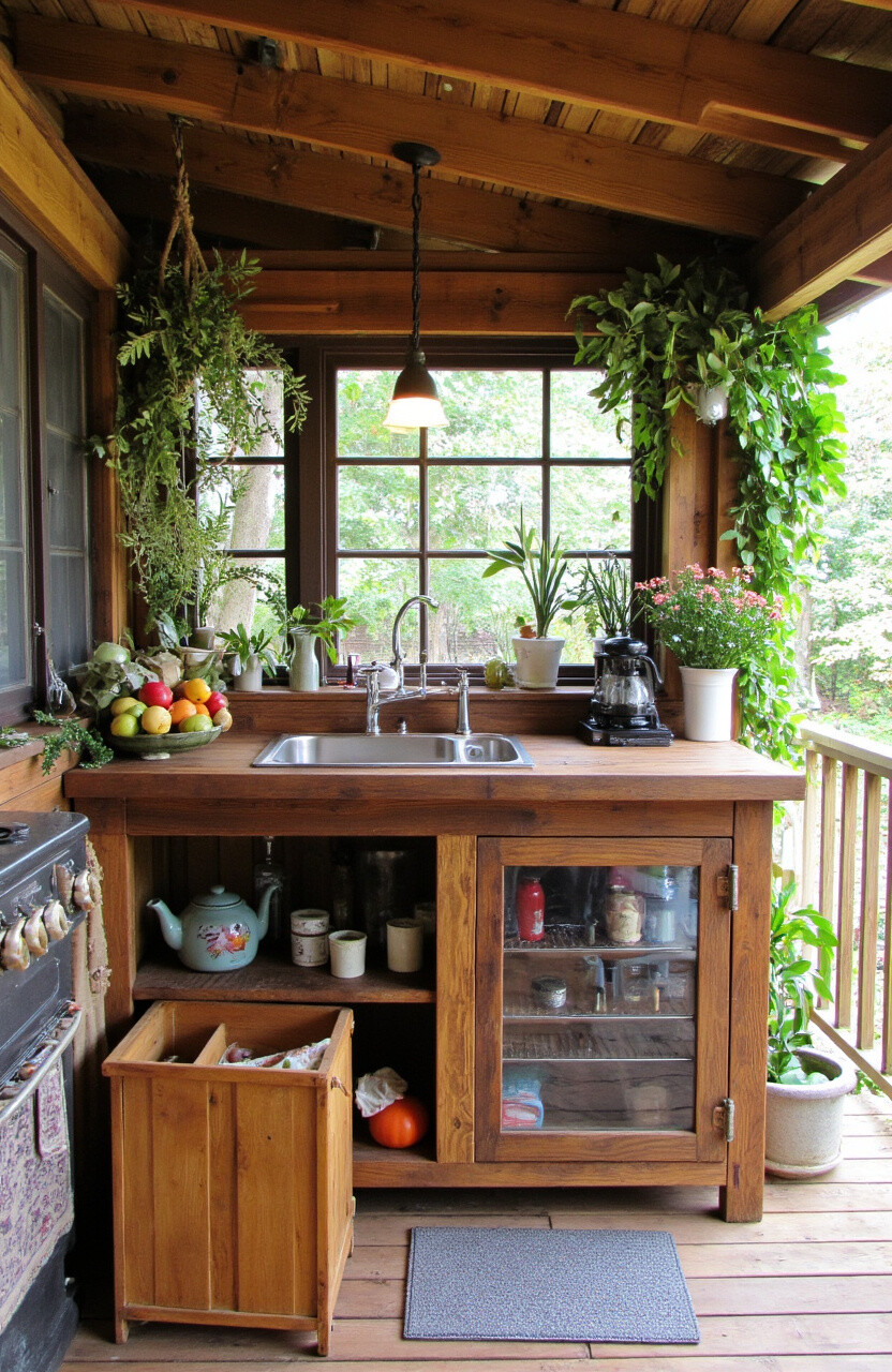 Imagine a kitchen that feels like a cozy cabin in the woods. With wooden countertops and vintage kitchenware, this setup gives a charming, old-world feel.