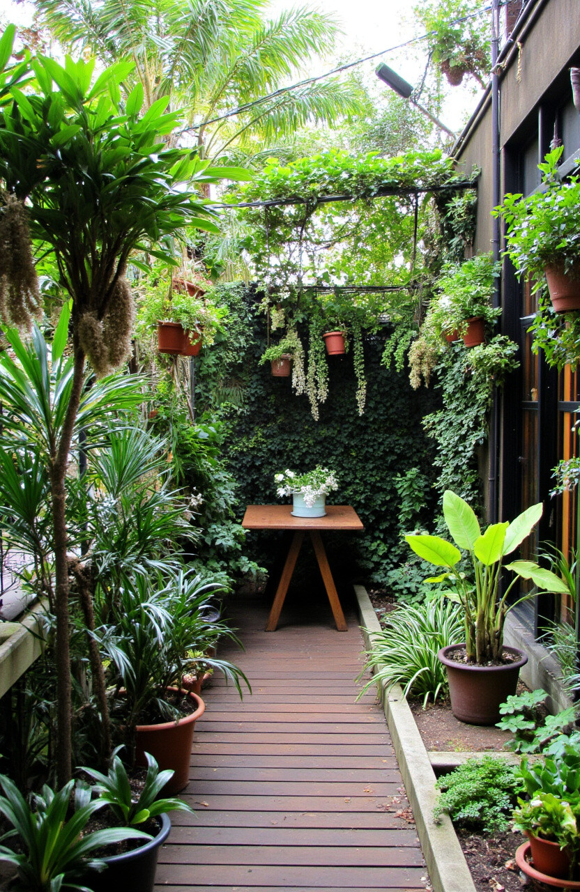 Use vertical gardens and hanging plants for that jungle feel. It’s unique and perfect for plant lovers.