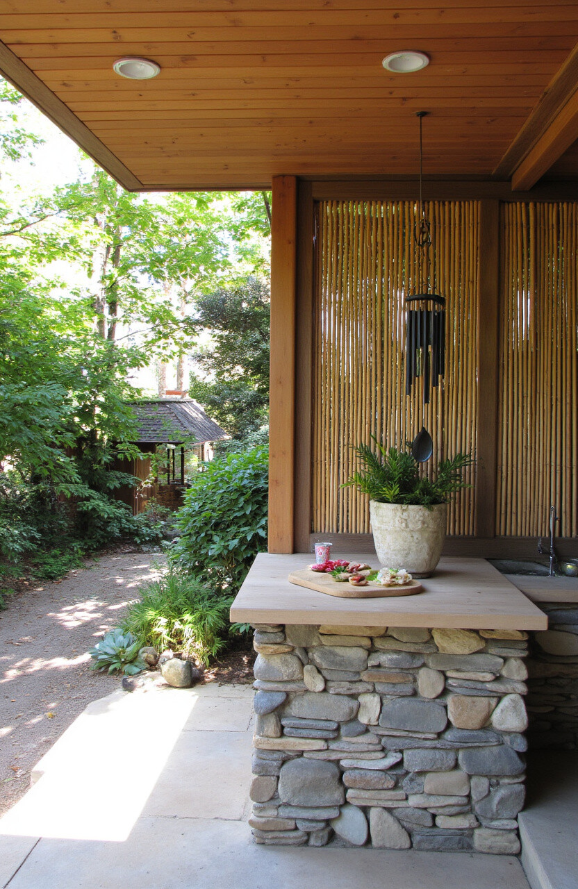 Imagine a serene space with bamboo and stone accents. A Zen kitchen promotes peace and tranquility.