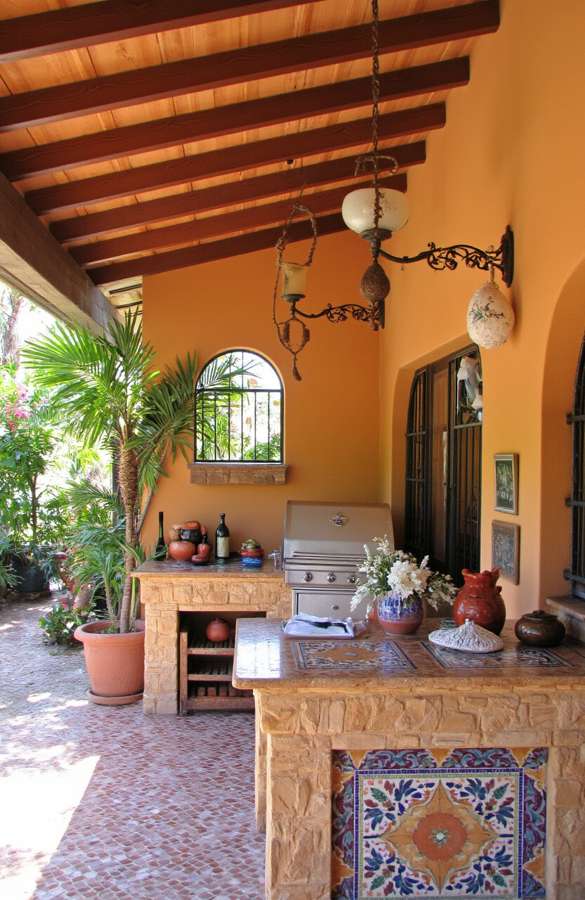 This setup is unique with its colorful mosaics and wrought-iron fixtures. Add some olive trees for authenticity.