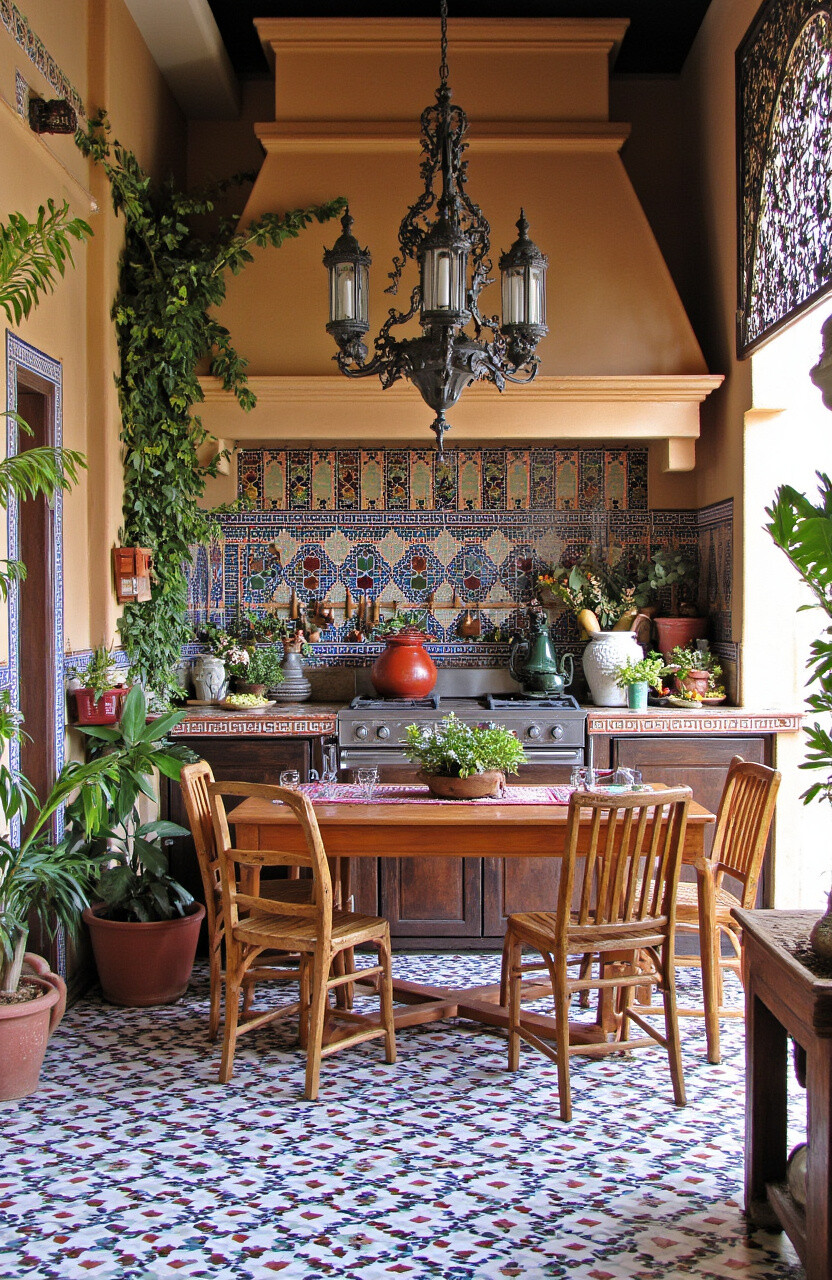 Imagine a kitchen full of vibrant colors and intricate patterns. A Moroccan kitchen feels exotic and luxurious.