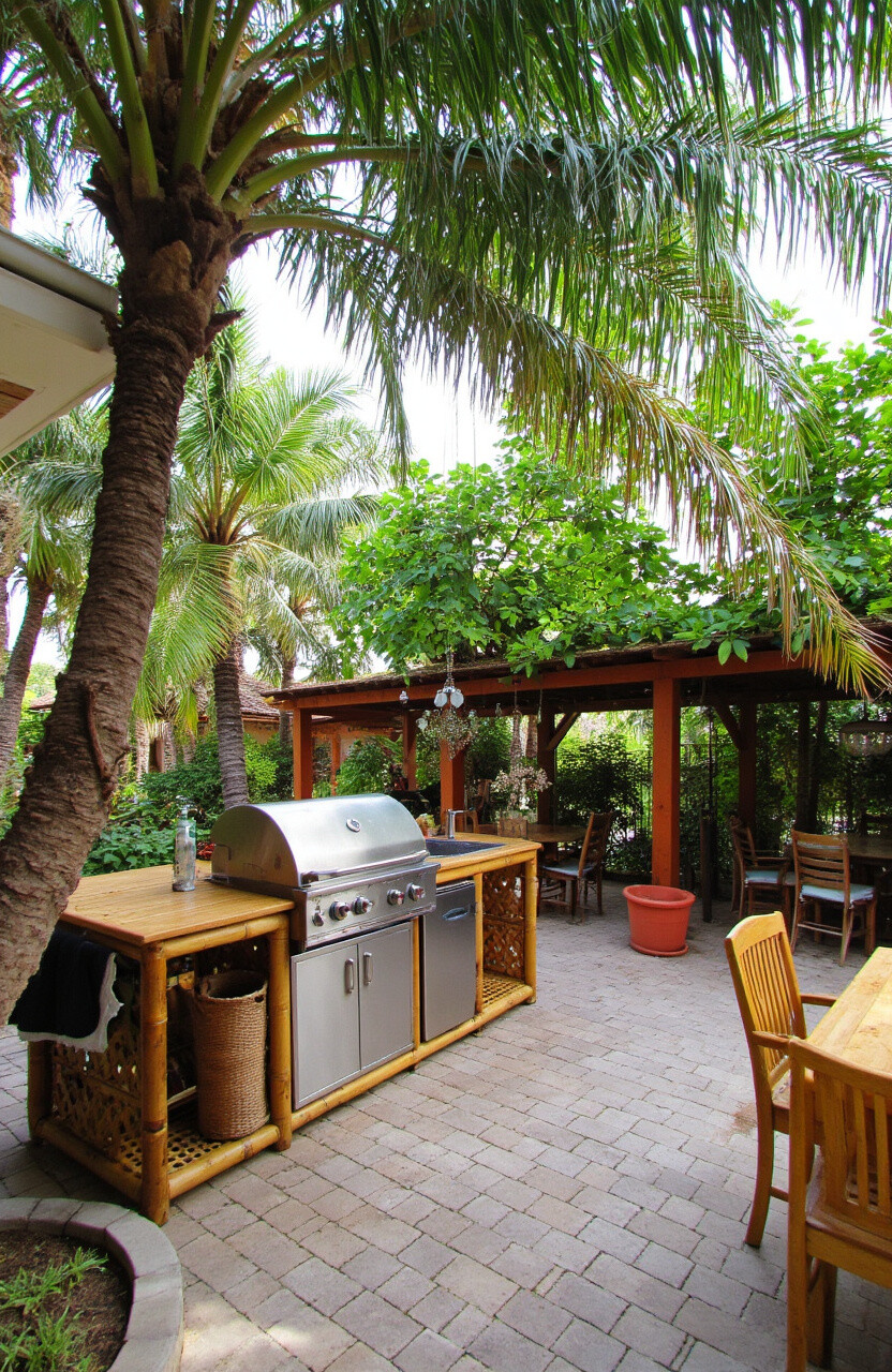 Imagine cooking under palm leaves with the sound of a waterfall in the background. A tropical kitchen brings island vibes to your backyard.