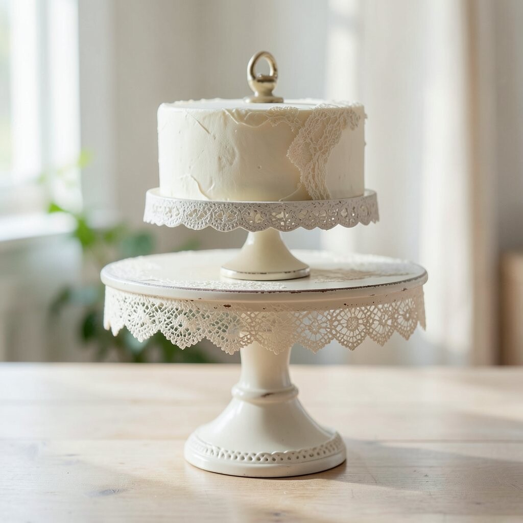 A lace-patterned ceramic stand brings a touch of the past to the present. Its delicate design is perfect for vintage-themed parties or tea gatherings. Imagine it as a centerpiece at a bridal shower.