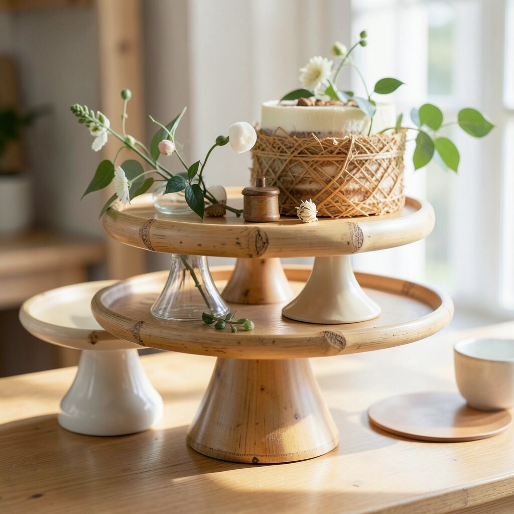 Bamboo stands are environmentally friendly and stylish. Ideal for eco-conscious events or natural themes. It’s like the earth supporting your cake.