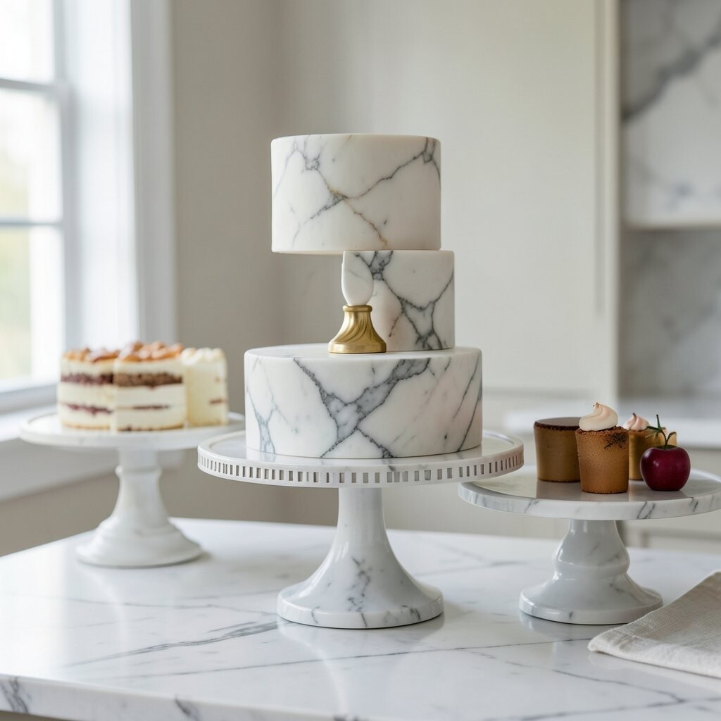 Marble stands are like sculptures for your cake. Their weight and luxury feel elevate any occasion. Ideal for sophisticated events or chic home gatherings.