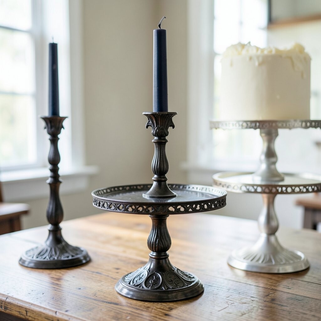 Candle holder stands bring a gothic twist to your cake display. Perfect for Halloween or dark-themed parties. It’s like a mysterious stage for your cake.