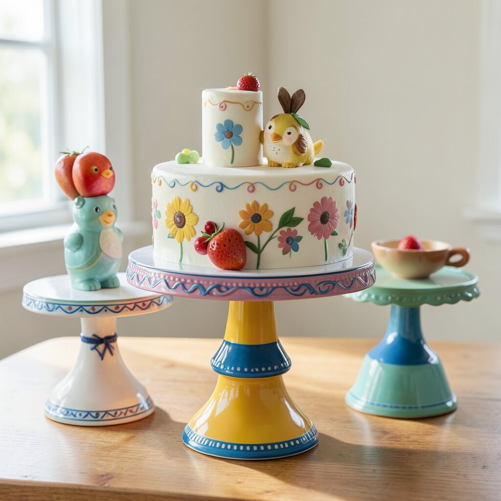 Bright colors and fun patterns make this stand a joy to behold. Ideal for kids’ birthdays or joyful celebrations. It’s like a burst of happiness for your cake.