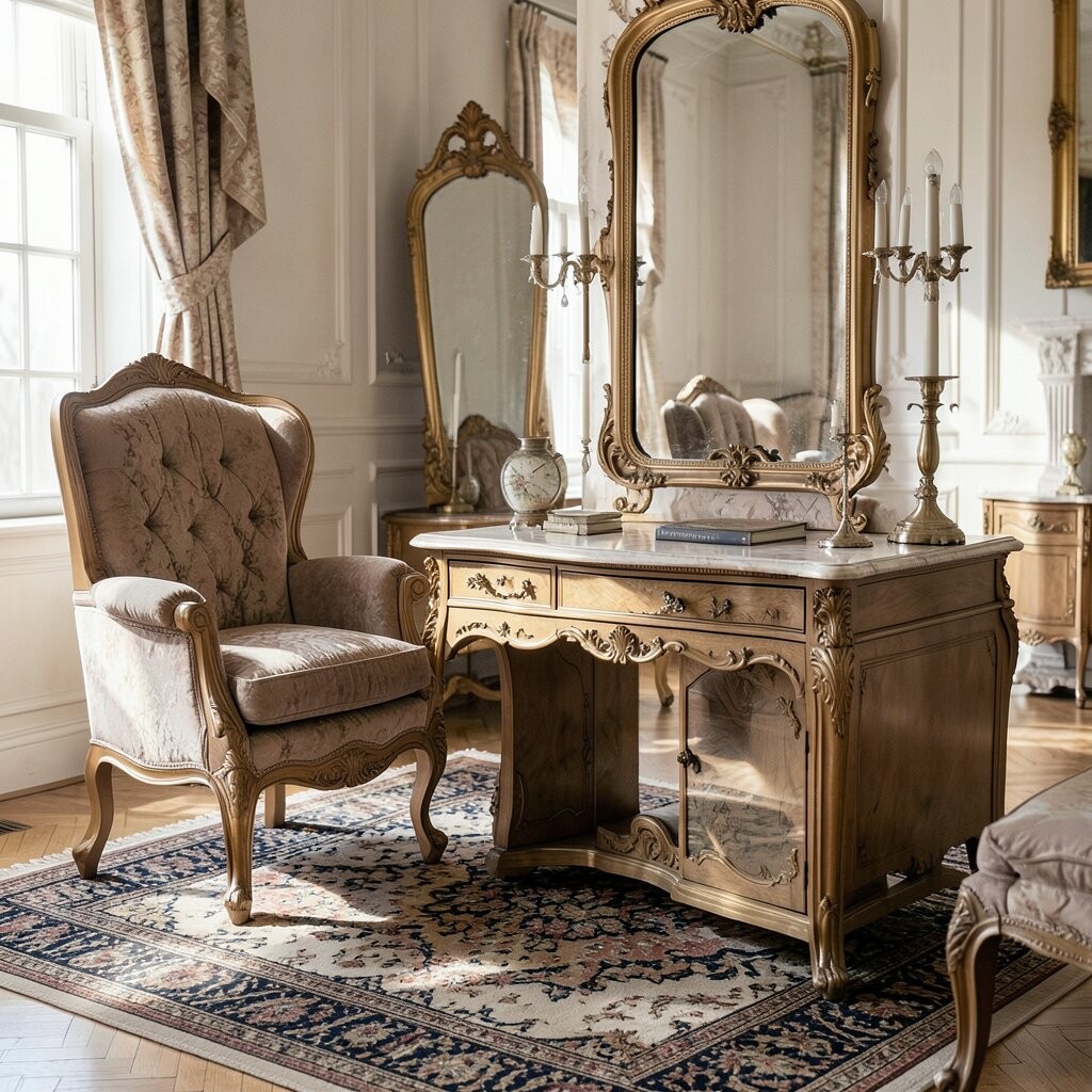 Embrace the opulence of vintage glamour with luxurious materials and elegant designs. Picture rich fabrics, metallic accents, and a touch of drama. Vintage glamour is perfect for creating a stylish, sophisticated space.