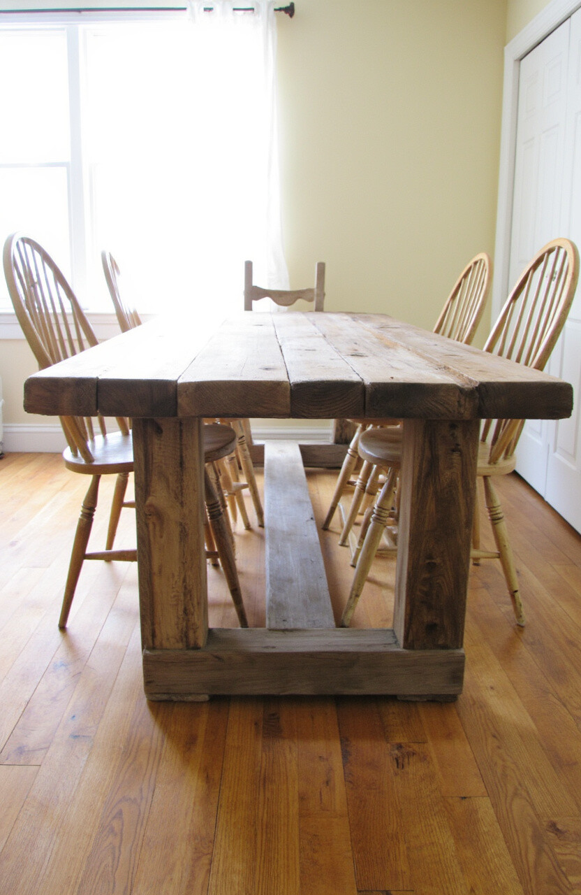 Imagine a table made from reclaimed wood, full of character and warmth. This style brings a cozy, inviting feel to your dining area.
