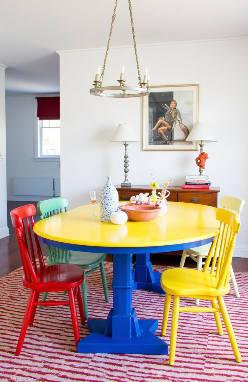 Why not make the dining table the star of the room? A bold-colored table can do just that.