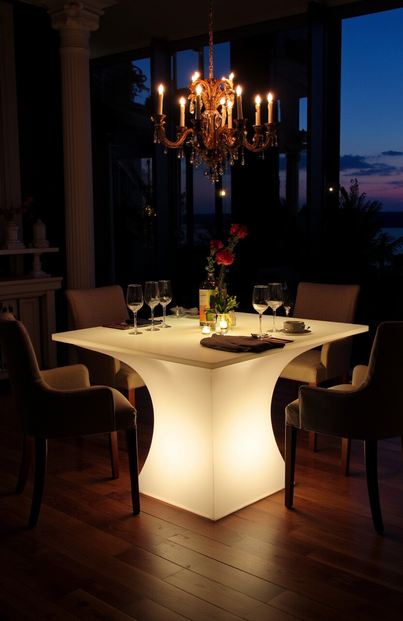 Tables with built-in lighting add a glow to your dining experience. They’re modern and eye-catching.