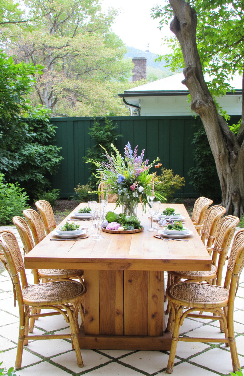 Bringing outdoor elements inside creates a refreshing vibe. Tables made from teak or bamboo evoke nature.