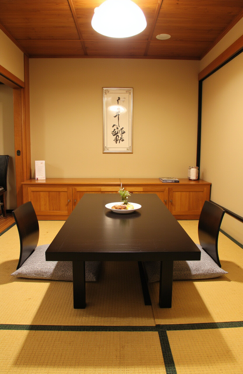 Low tables with floor seating bring an authentic Japanese feel. It’s simple, serene, and promotes relaxation.