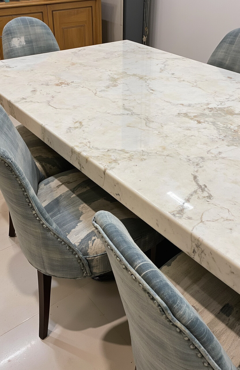 Stone tables are solid and stunning. Marble or granite adds elegance and durability.