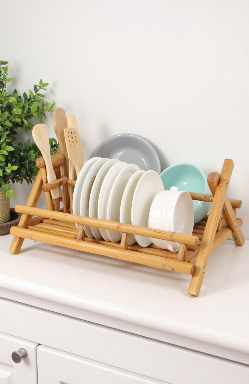Bamboo is sturdy and water-resistant, making it perfect for holding wet dishes. These racks often fold up, making storage a breeze.