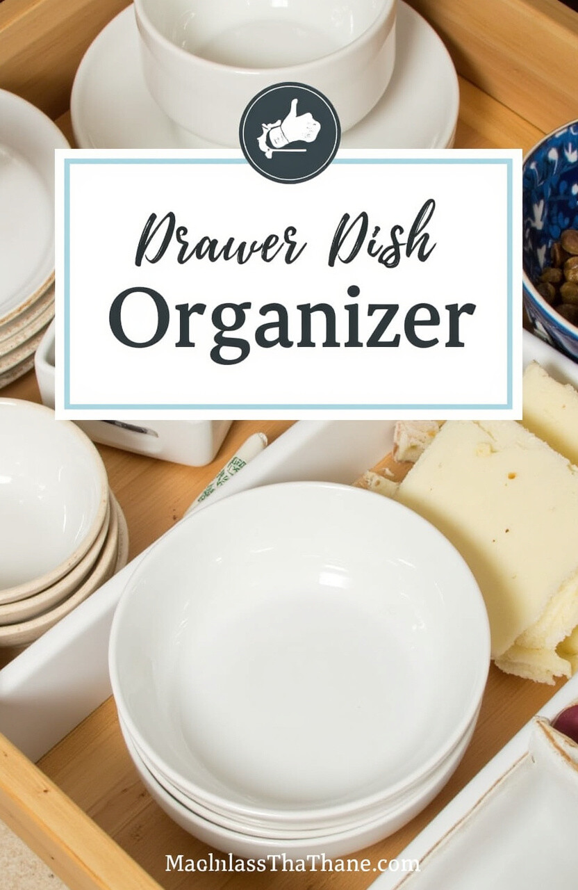 Keep your dishes neatly tucked away with a drawer dish organizer. It’s like a custom home for your plates and bowls inside your drawer.