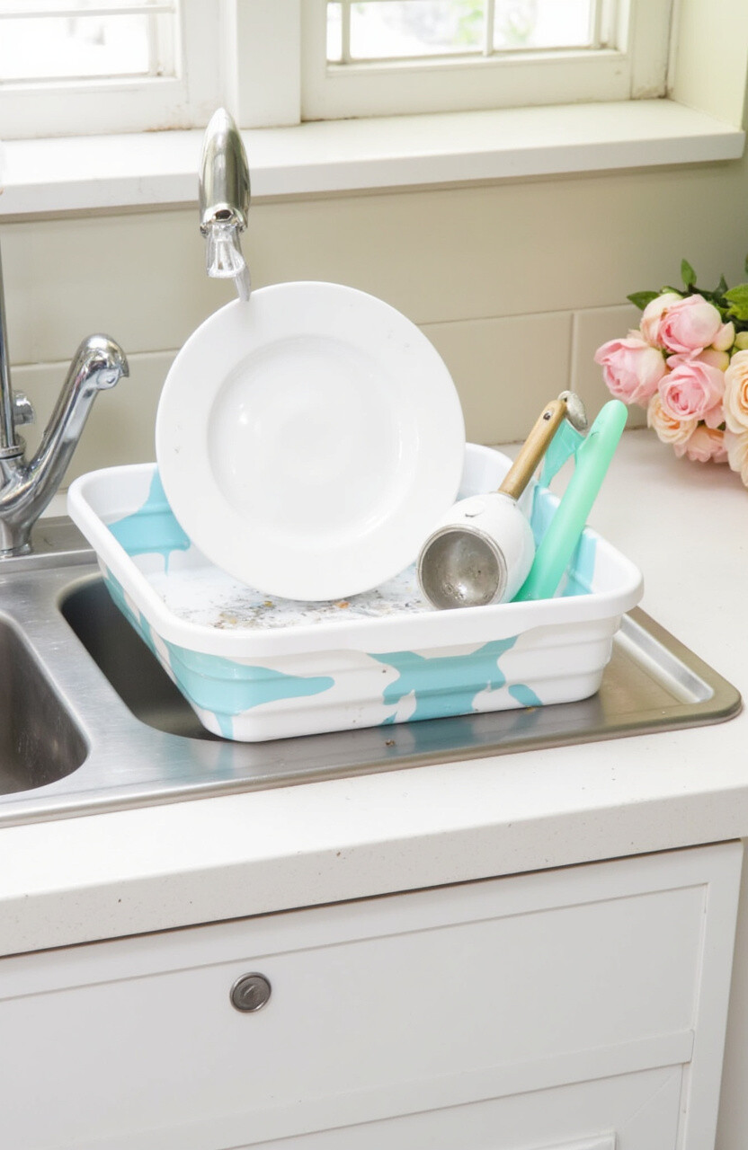 Maximize versatility with a collapsible dish rack. It pops up when you need it and folds away when you don’t.
