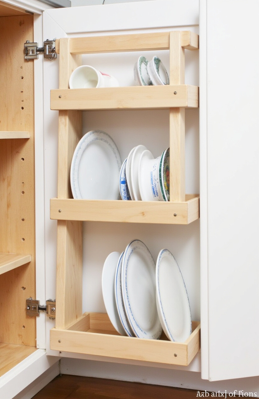 Get crafty with a DIY dish organizer. Use materials like wood, wire, or even old crates to create your custom rack.