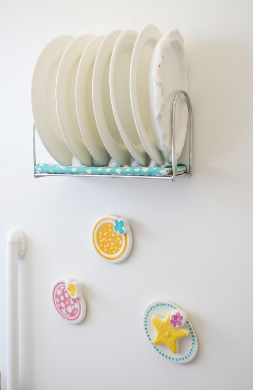 These racks are perfect for small kitchens, as they allow you to store more dishes in a compact space. Choose one with a vibrant color for a playful touch.