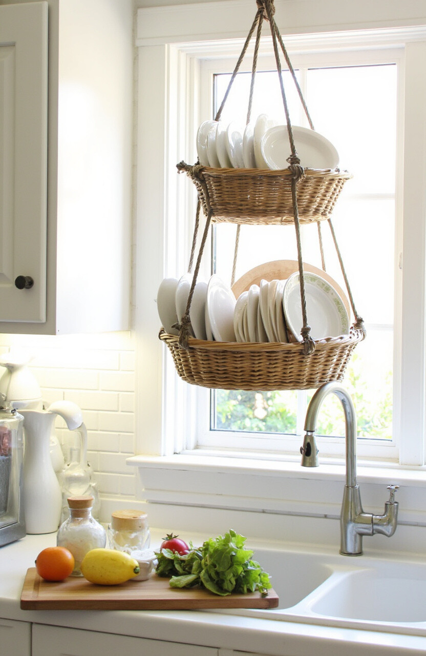 Add some charm with a tiered hanging basket. It’s like a floating fruit basket for your dishes.