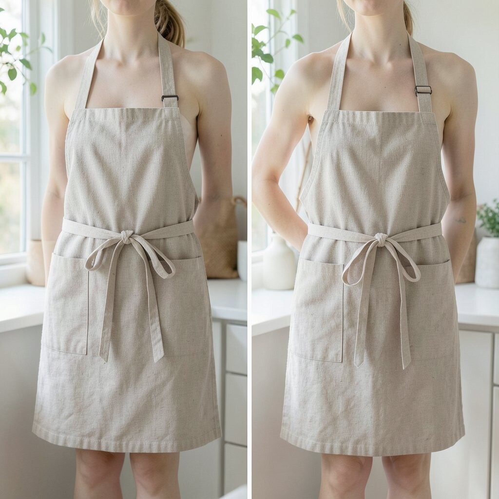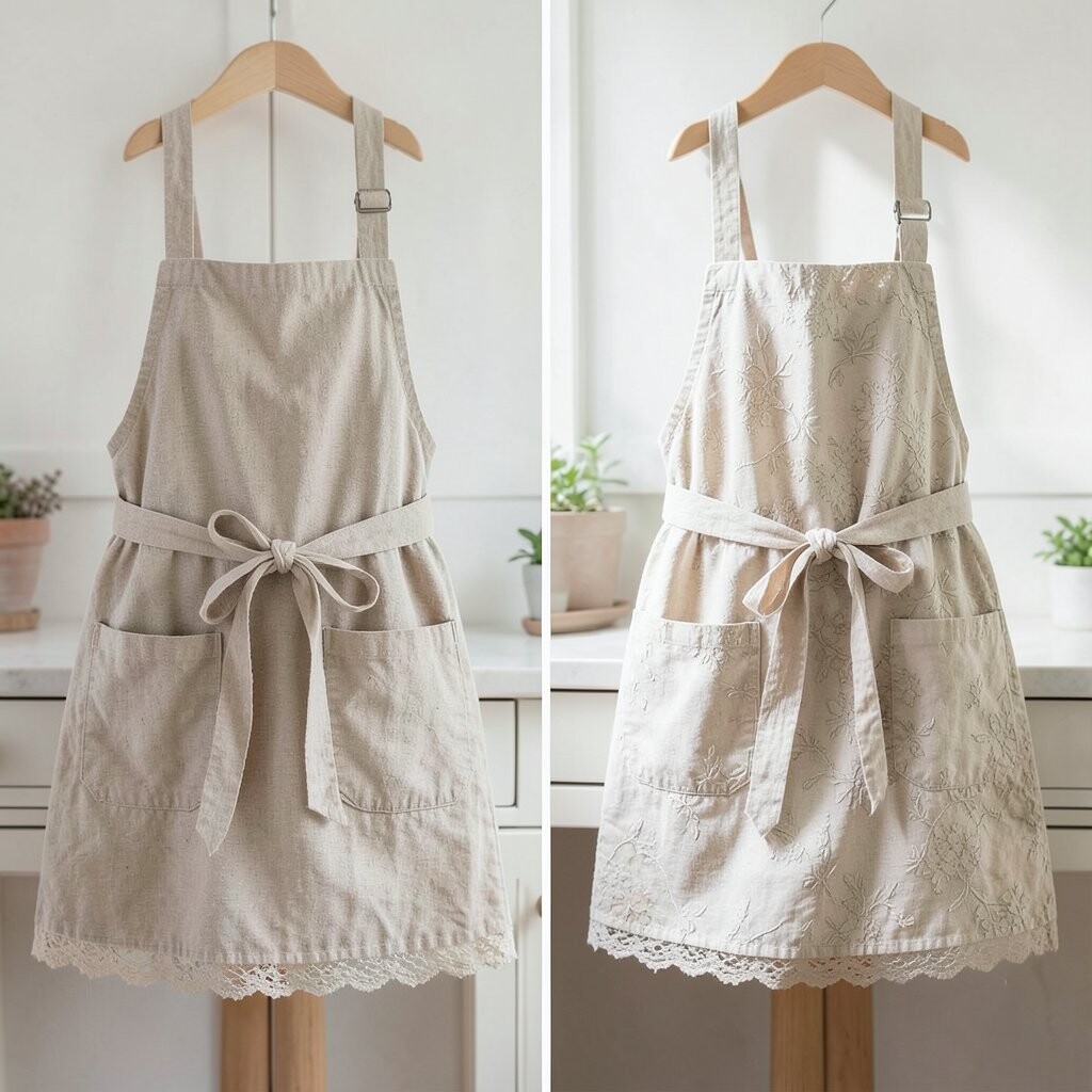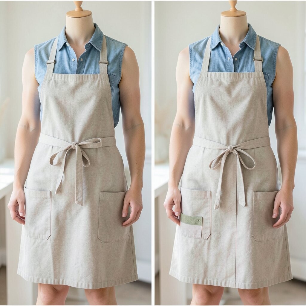 Linen aprons have a simple, elegant look. The natural texture and color of linen create a classic, sophisticated style.