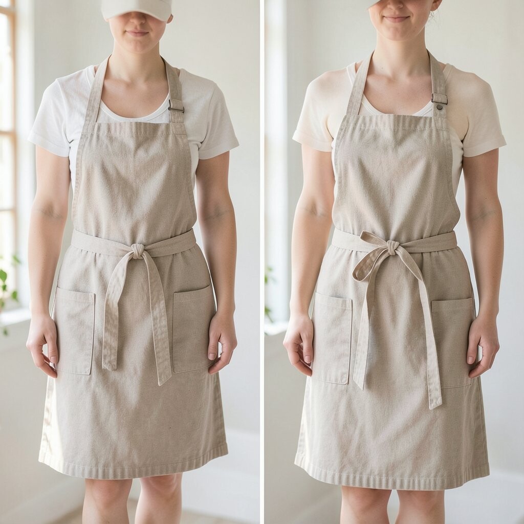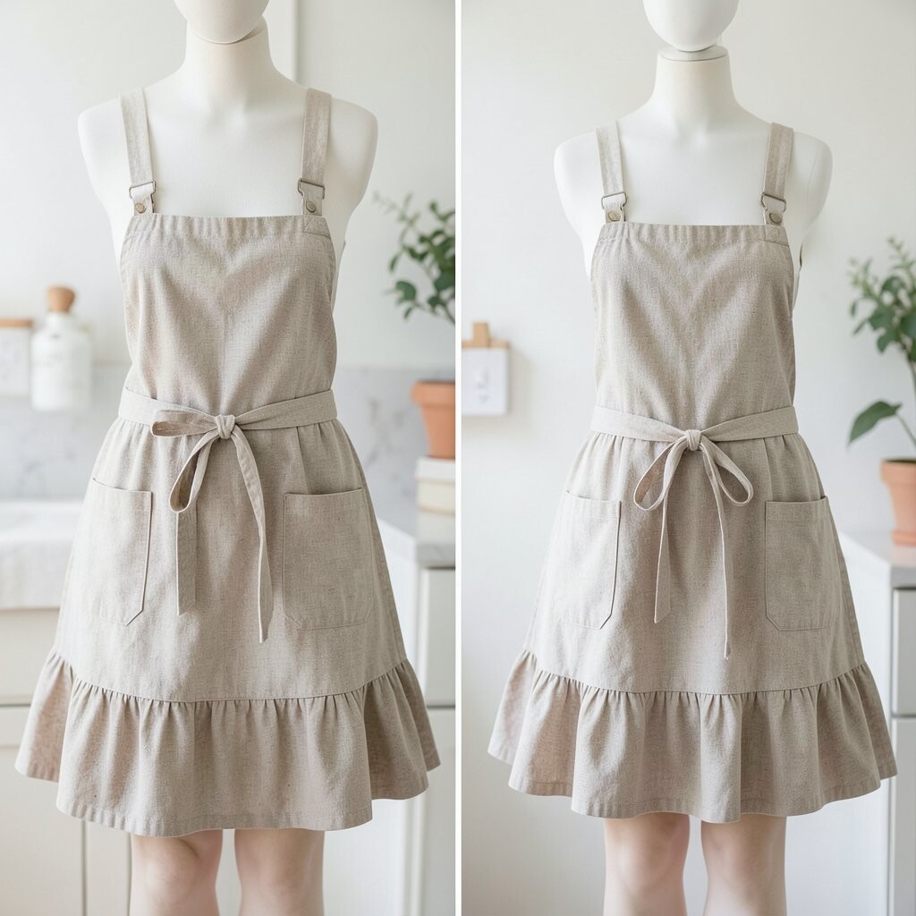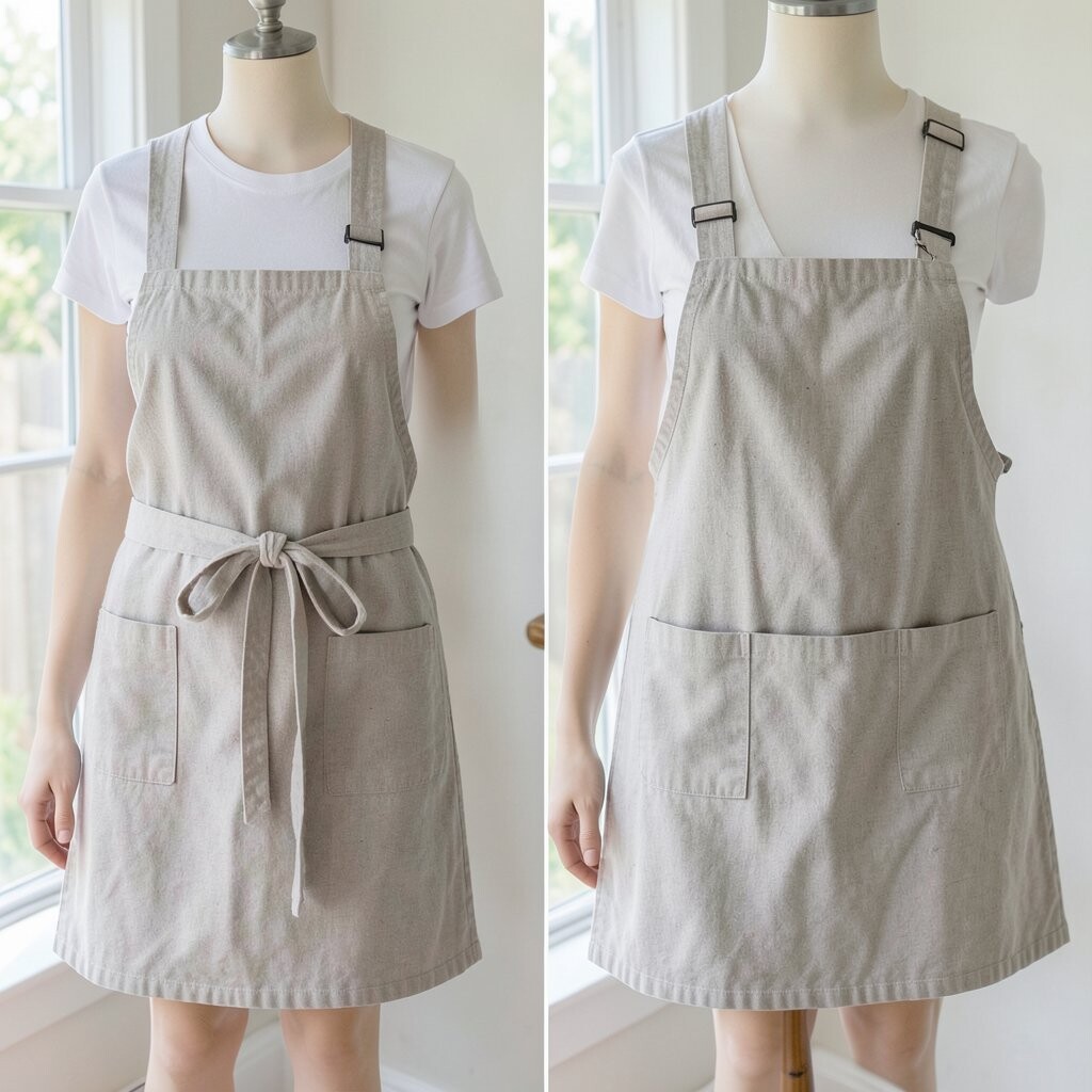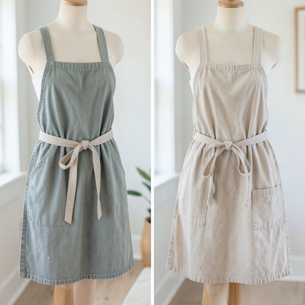 Linen aprons have a simple, elegant look. The natural texture and color of linen create a classic, sophisticated style.