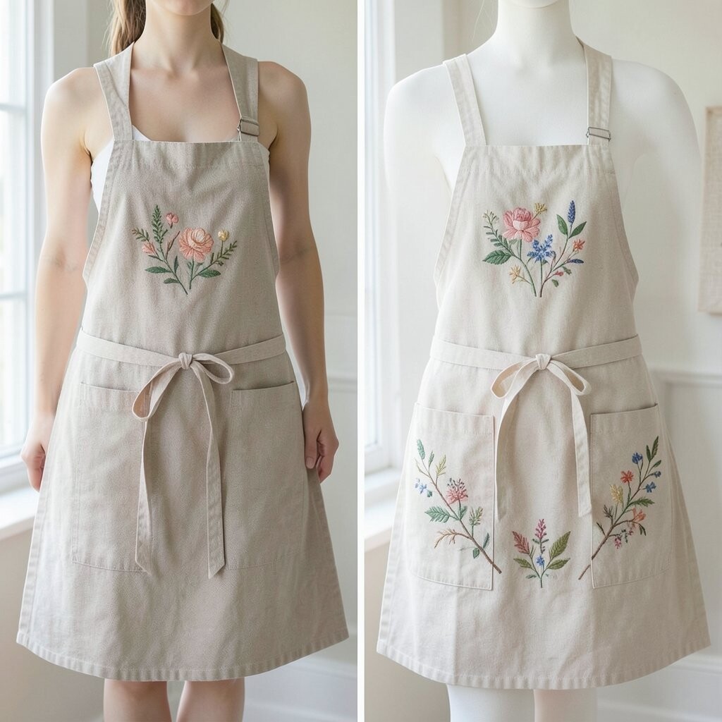 Personalize your apron with hand-stitched embroidery. It adds a charming, homemade touch that’s hard to resist.