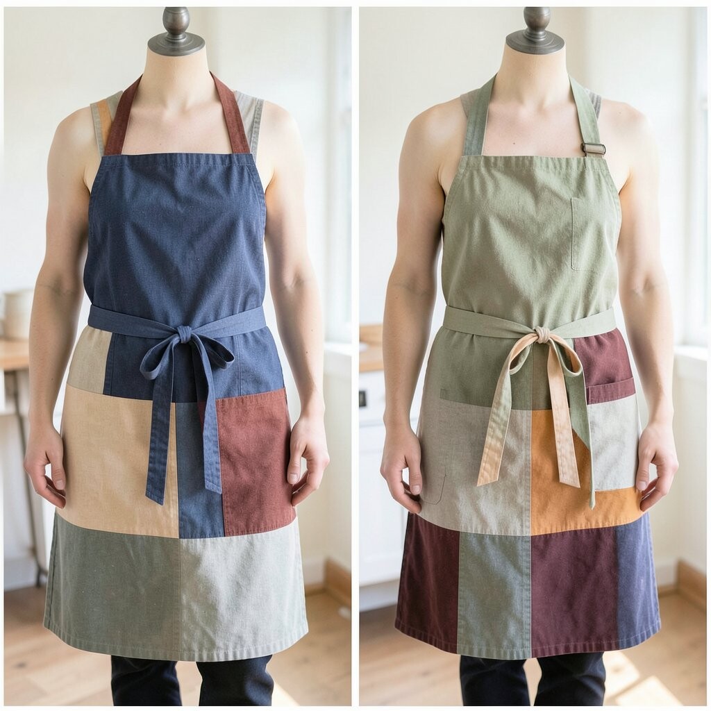 Mix and match bold colors for a vibrant, eye-catching apron. Color-blocking is a trendy way to add visual interest.