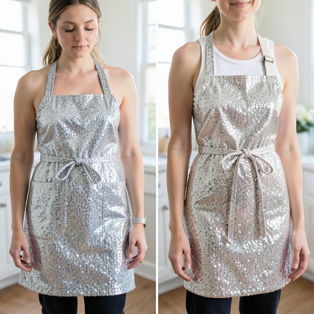 Add a touch of glamour to your kitchen with a sequin apron. Perfect for those who love a bit of sparkle.