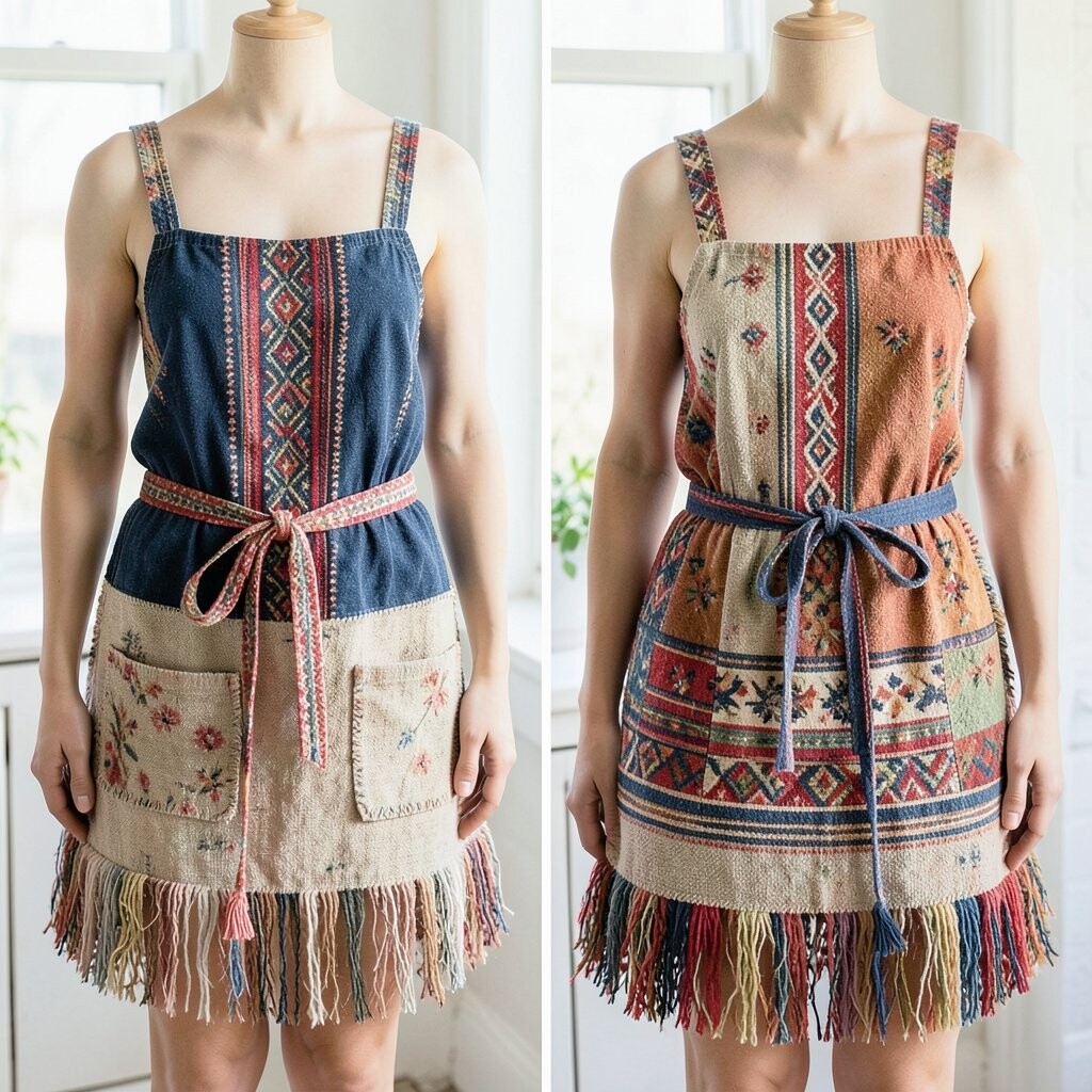 Use colorful threads for a lively look or stick with neutral tones for subtle elegance. This apron is all about personality.