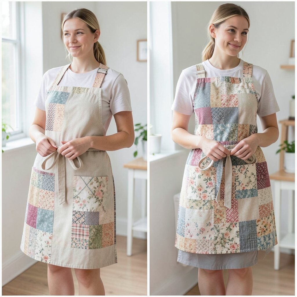 Use fabric scraps to create a colorful patchwork apron. It’s a fantastic way to use leftover fabric pieces.