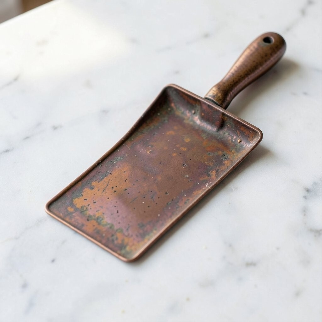 Step back in time with a vintage copper dough scraper. Its old-world charm and beautiful patina make it a unique addition to any kitchen.