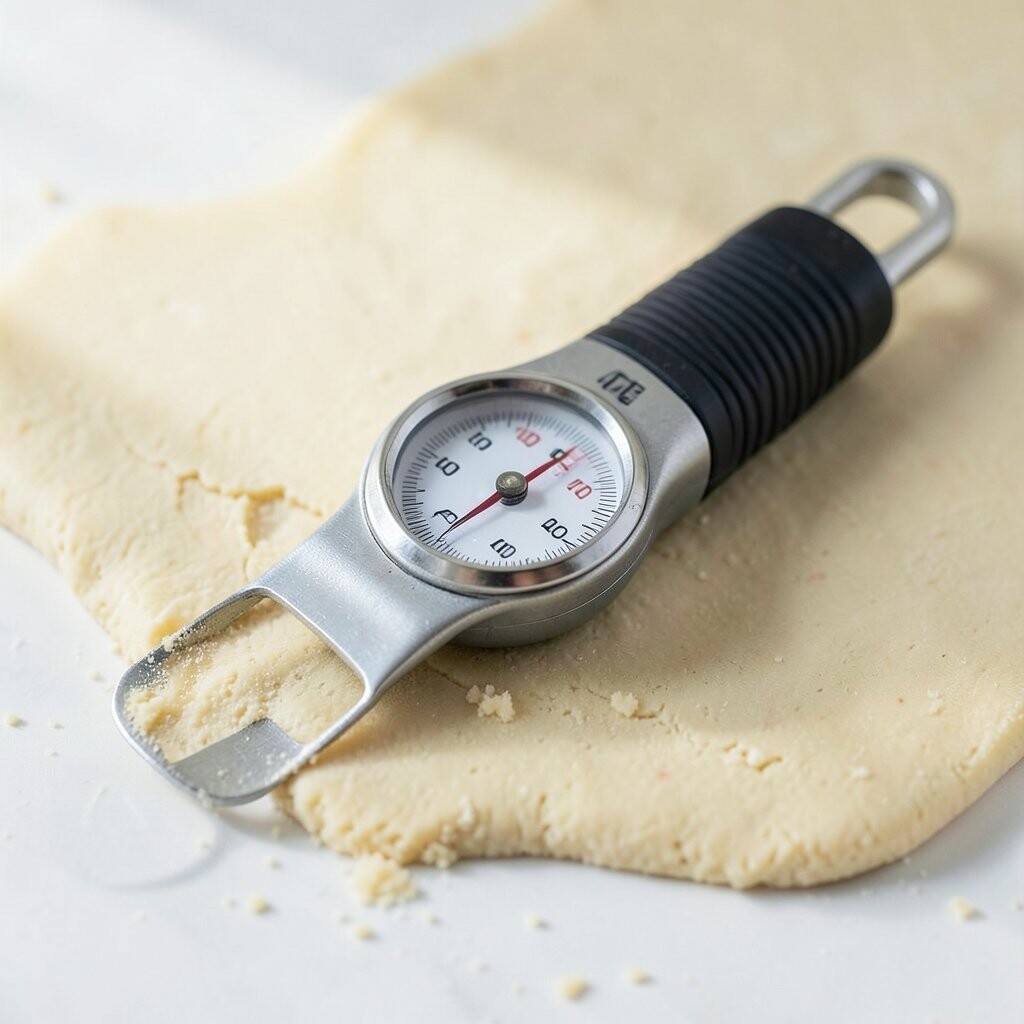 Monitor dough temperature with a scraper that includes a built-in thermometer. It ensures your dough is always at the right temperature for baking.