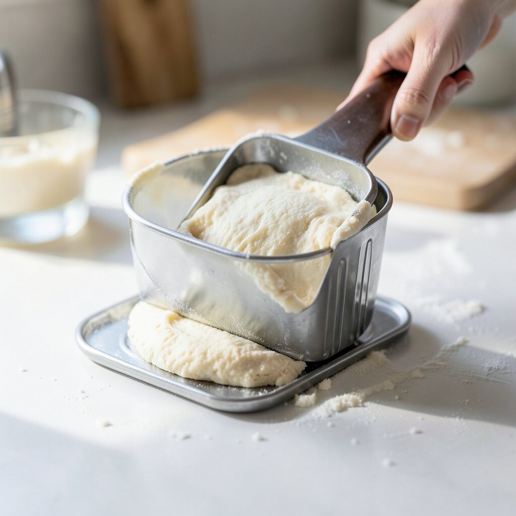 Lift and scrape dough with one tool using a scraper that includes a built-in dough lifter. It’s a game changer for heavy doughs.