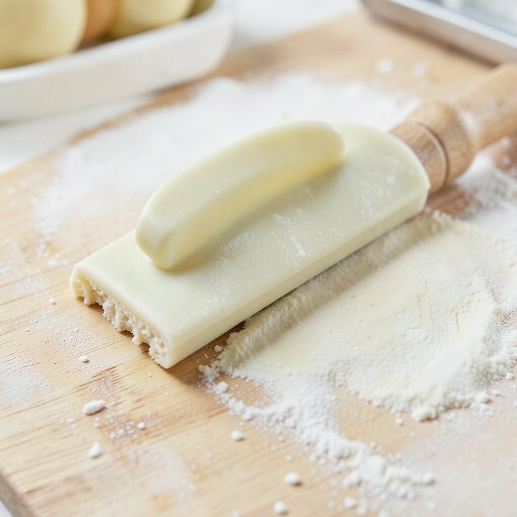 Combine scraping and rolling with a scraper that includes a built-in dough roller. It’s a two-in-one tool that saves time and space.