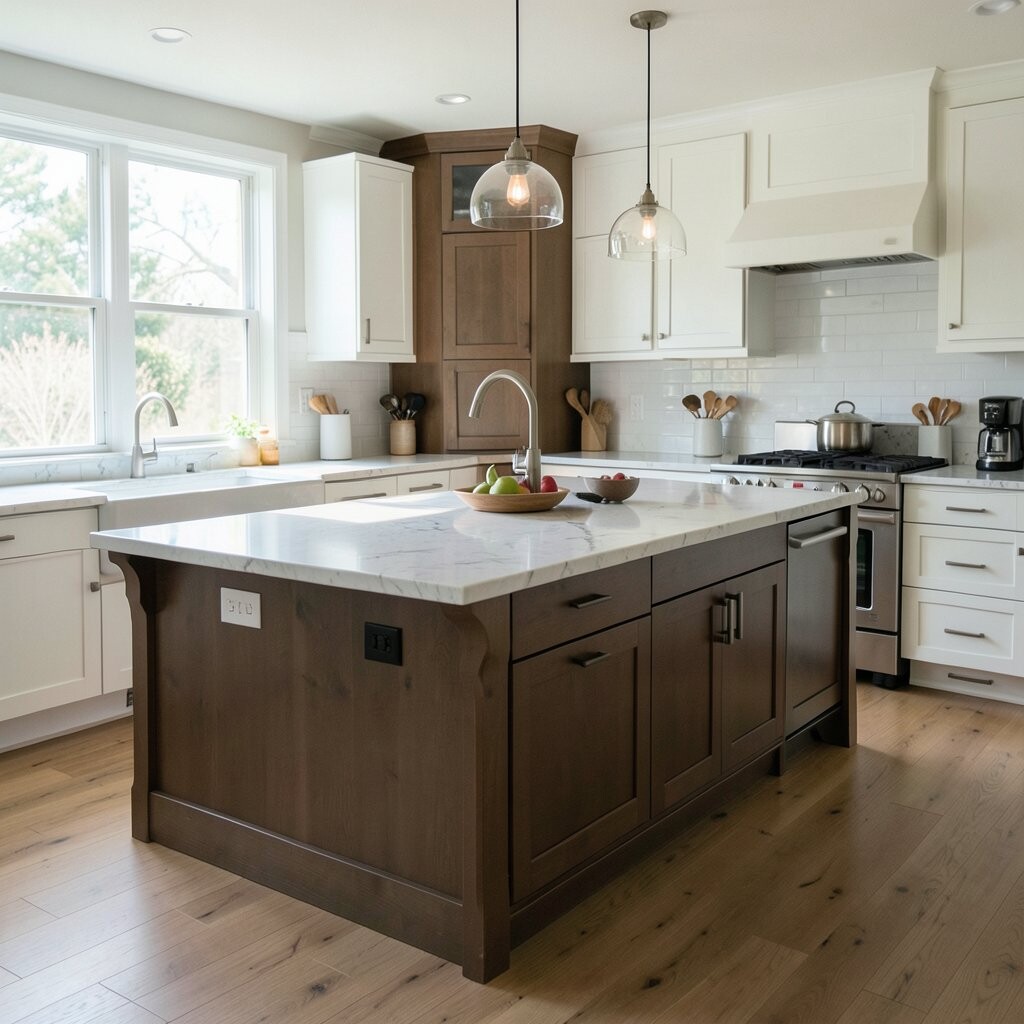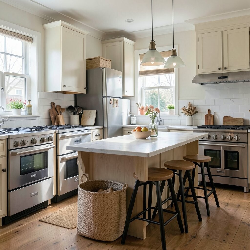 This choice adds a light look and keeps the room from feeling too blocky. It can also make a smaller kitchen feel less crowded.