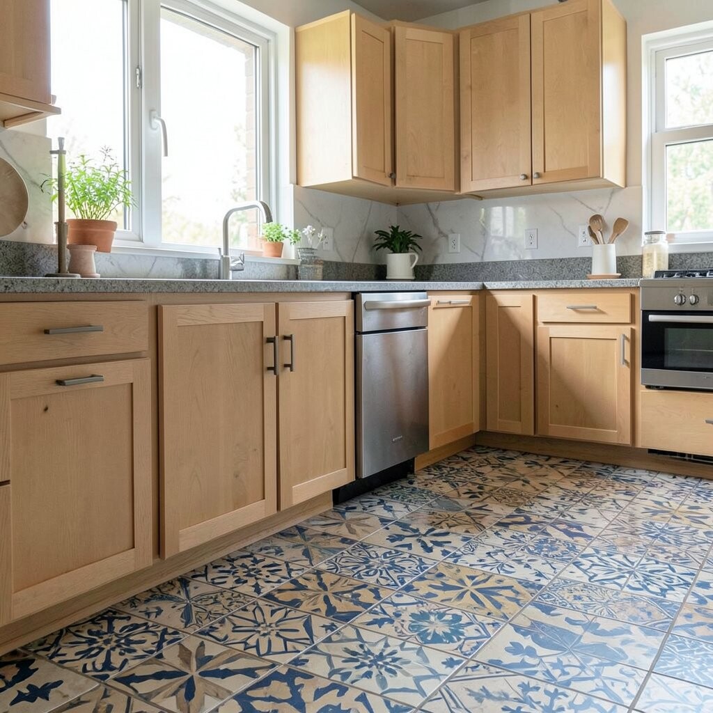 Bring in a Pop of Tile on the Floor A patterned floor can give a kitchen a big dose of charm. Geometric tile, vintage-inspired prints, or soft checkerboard designs can feel full of life.