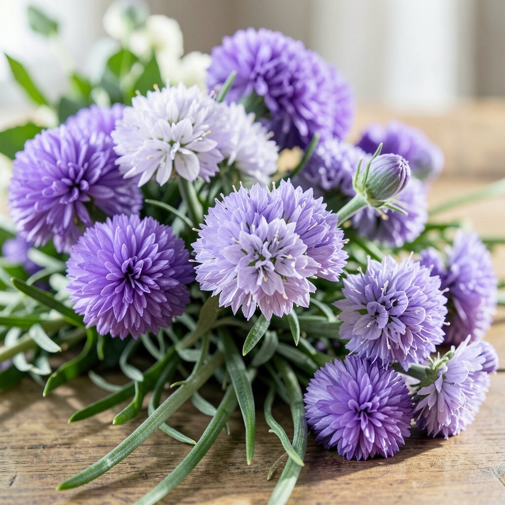 14. Chive Blossoms for Purple Pom-Poms