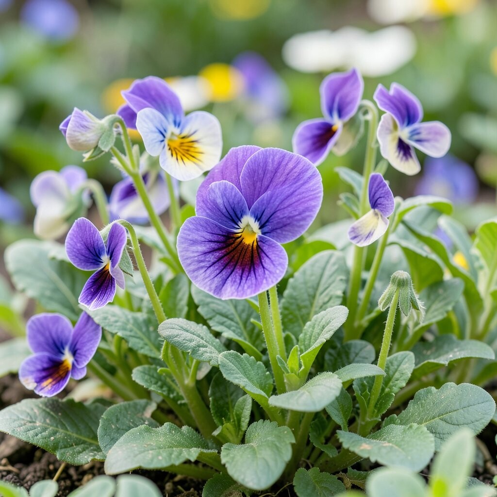 Pansies have soft petals and tiny face-like centers that look cheerful and sweet. Their colors can be deep purple, sunny yellow, or soft blue, which makes them feel almost like candy for the eyes.