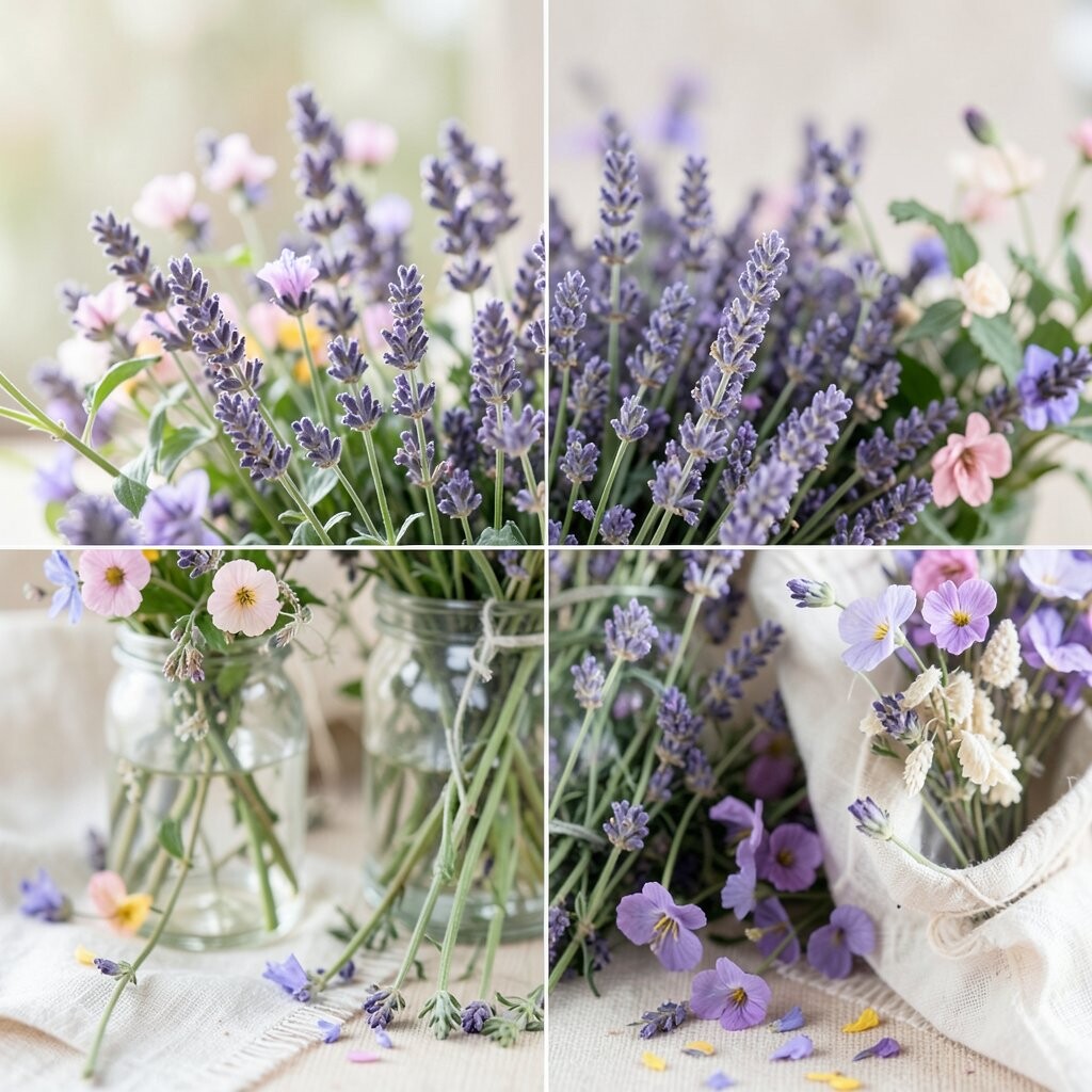 Lavender has slim purple spikes that look neat and elegant. It brings a strong floral scent, so even a small amount can feel special and polished.