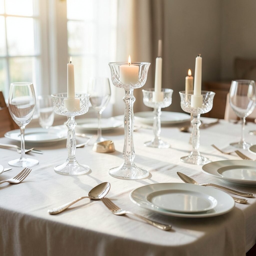 Crystal candle holders add sparkle and a little magic to the table. When the candlelight hits them, the whole room can feel softer.